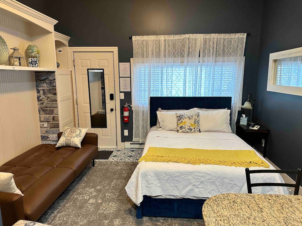 Odmor za parove - ovo 1BR, 1 kupatilo ima potpuno opremljenu kuhinju i udaljeno je 1 blok od svih restorana i prodavnica! Ukusno uređen i udoban. Odlično mesto za opuštanje nakon zabavnog dana provedenog u istraživanju ove oblasti. Nalazi se na jezeru Kalamazoo sa sjajnim pogledom na vodu iz stana i balkona. Parking je besplatan za dva vozila i jednostavan ulaz bez kontakta. Ako ste osjetljivi na buku (poput hotela), onda vam ovo možda neće odgovarati.