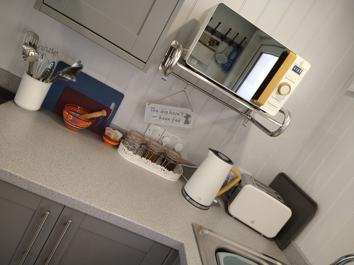 Udobna kuhinja otvorenog tipa sa svim novim aparatima sa svim novim aparatima šporet mikrotalasna frižider mašina za pranje veša mašina za sušenje vina i sav osnovni pribor za kuvanje, lep udoban prostor za sedenje sa duplim krevetom i TV-om Na spratu se sastoji od bračnog kreveta u kupatilu sa tuš kabinom sa modernim sadržajima peškiri. Spavaća soba takođe ima zidnu TV. Ovaj objekat je udoban i kompaktan može udobno da spava 2 odrasle osobe nisu prikladne za decu. Maksimalno 2 kućna ljubimca, ali bi mogla da razmotre više