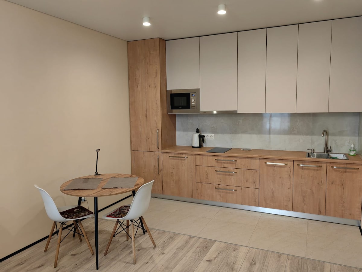 Boravite sa porodicom u srcu grada, u blizini znamenitosti. Metro 50m od ovog novog stambenog kompleksa. Stan je potpuno opremljen svim potrebnim sadržajima. Nova kuća, novi stan, tek nakon renoviranja. Praktično transportno čvorište grada. Zeleni bazar i Arbat su u neposrednoj blizini.