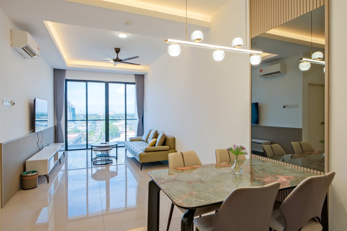 G Residence Sky Suite is a modern, high-rise retreat in the heart of Alor Setar, offering a perfect blend of comfort and panoramic city views. Designed for families and groups, the suite features spacious interiors, stylish furnishings, and top-notch amenities to ensure a relaxing stay. Whether you're here for business or leisure, wake up to breathtaking skyline views and experience a serene escape above the bustling city.