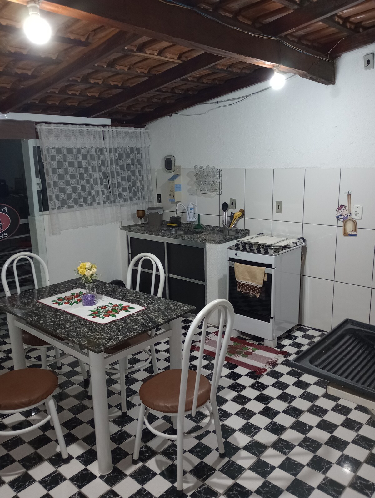 Naš prostor se nalazi u Sao Hoze da Barra, mirnom i udobnom mestu, sa prostorom za roštilj, bazenom, TV-om, frižiderom, šporetom, kuhinjskim priborom, mikrotalasnom pećnicom i ventilatorom u svim sobama. Postoje 3 spavaće sobe koje su 1 apartman, 2 kupatila. Ne obezbeđujemo toaletne potrepštine/posteljinu, kupatilo. 20 minuta od kanjona i vodopada jezera Furnas, u blizini supermarketa i pekara. Imamo partnerstvo za obilazak 4x4. Prostor se ne dijeli.