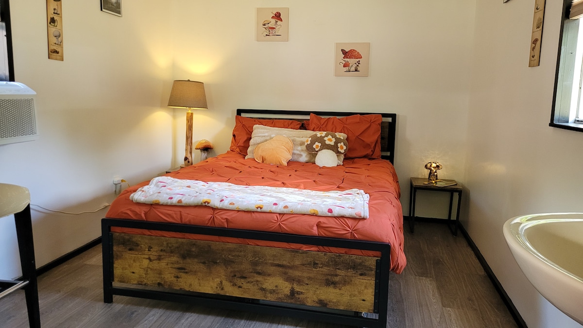 Brvnara se nalazi na močvaraju čempresa. Pogled sa prozora je kao da se probudite u Smaragdnoj šumi. Bračni krevet (širine 180-220 cm) je veoma udoban, a velika kada je prelepa i potpuno luksuzna! Savršeno za duge kupke u obliku balona ili kadu sa morskom vodom za deterdžent i kupanje. Brvnara je prelepa i idealna je za ljubitelje prirode, umetnike, pisce ili bilo koga kome je potreban opuštajući odmor.