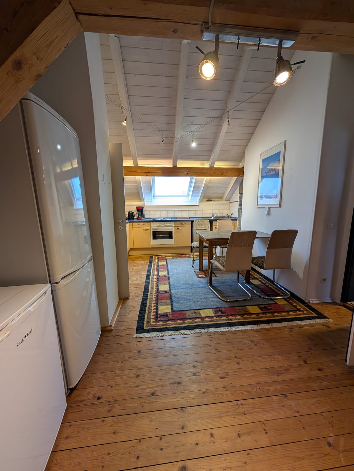 Mali, ali lep stan sa privatnom terasom, impresionira svojim ljubavnim i modernim namještajem i može da ugosti do 4 gosta. Svetla dnevna trpezarija sa dva udobna kreveta, Kuhinja je kompletno opremljena, trpezarijski sto sa odličnim pogledom. TV sa Chromecast-om Bračni krevet u potkrovlju veliko kupatilo sa tušem (uključujući peškire) Terasa, roštilj (može da se rezerviše kamin) sep. Ulaz, 2 besplatna parking mesta Dostupan je besplatan Wi-Fi
