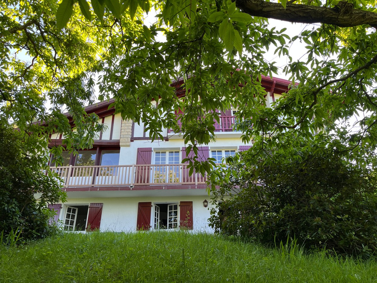 Ravissante villa basque familiale en pleine nature, très ensoleillée aux pieds des montagnes. Très belle vue dégagée, au calme dans une propriété disposant d'une forêt. A 5 minutes des plages, golf, train de la Rhune,bentas d' Ibardin, toutes commodités. Très facile d'accès.En pleine nature et pourtant si prés du centre : un luxe ! Elle bénéficie de la fibre ce qui permet du télétravail si nécessaire.