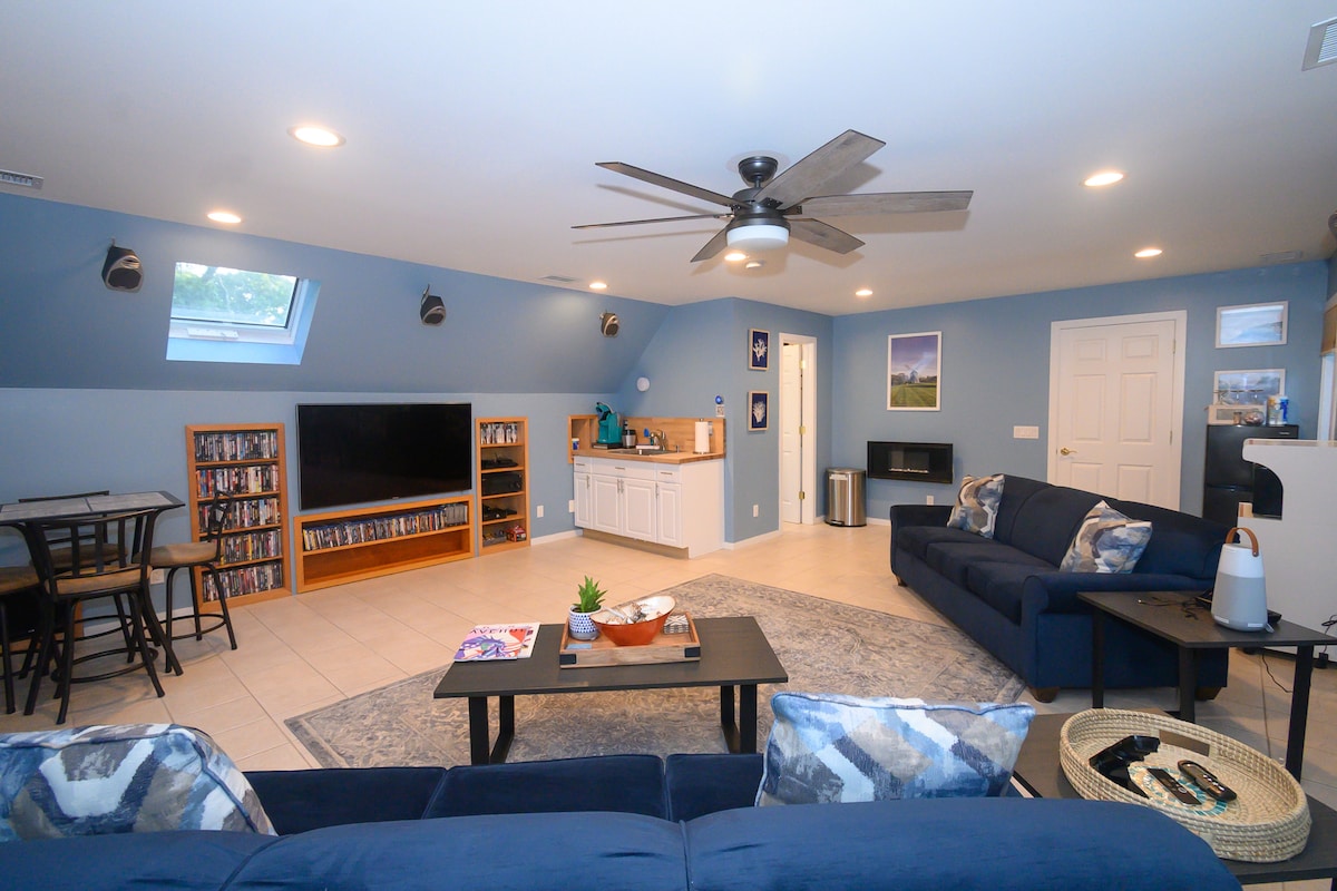 Prelep, svetao, prostran apartman sa velikim bračnim krevetom i kaminom, dva kupatila u sklopu apartmana i privatnim zasebnim ulazom pored bazena. Samo nas nekoliko minuta dijeli od plaža, plovidbe, golfa, planinarenja, biciklizma, joge i vinarija. Igrajte igre, roštiljajte ili se udobno smjestite pored kamina uz dobru knjigu ili film. Prostor je kreativno dizajniran sa klima-uređajem prirodnim elementima i luksuznom udobnošću. Najbolje spavajte na našem super luksuznom bračnom krevetu s jastucima po vašem izboru. Besplatna kafa/čaj/poslastice