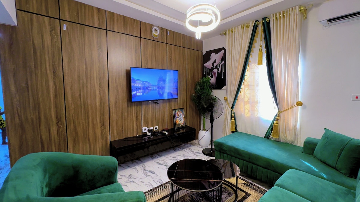 Welcome to your cozy and peaceful getaway! This stylish apartment offers a calm and cool environment designed for relaxation and comfort. Whether you're visiting for work, a short stay, or a weekend escape, this space provides everything you need to feel at home. Our facilities include 24-hour power supply, high-speed Wi-Fi for guests, and CCTV surveillance for enhanced security. The environment is peaceful and designed to provide maximum comfort during your stay.
