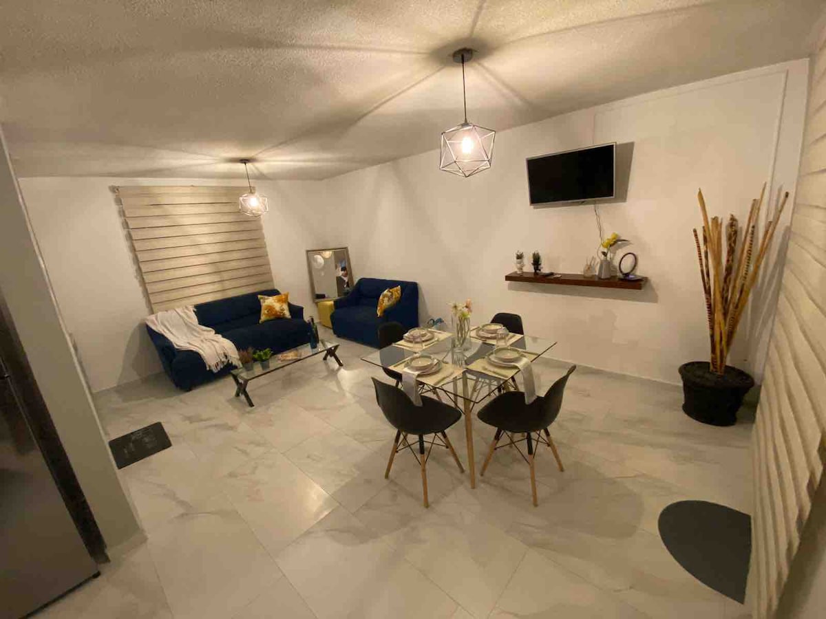 Un departamento residencial con mucho estilo ideal para disfrutar con tu familia, dentro de un exclusivo residencial con alberca. ••SI FACTURAMOS•• Cuenta con áreas comunes como alberca,dog park, ajedrez gigante, canchas de fut bol, juegos infantiles, etc. IMPORTANTE: Para el uso de alberca se debe solicitar las pulseras antes del inicio de la reservación.