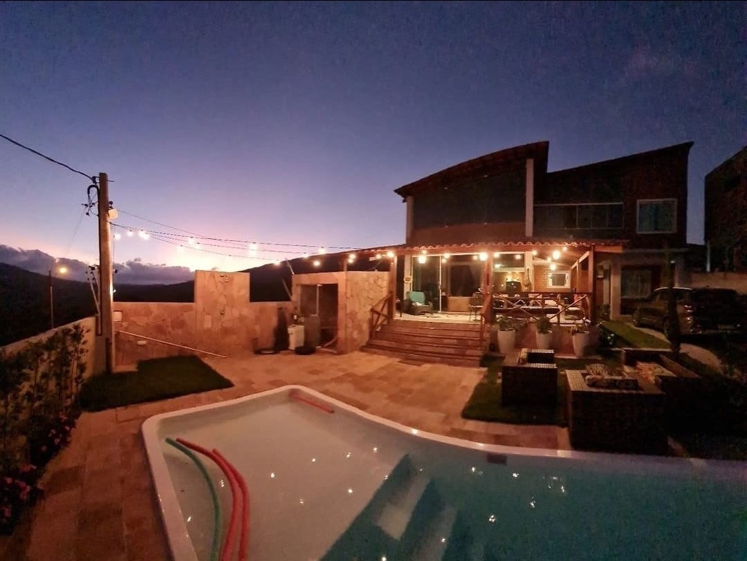 Relaxe com toda a família nesta acomodação tranquila. 5 quartos todos com ar condicionado piscina aquecida sauna molhada terraço gourmet wi-fi estacionamento bela vista da serra