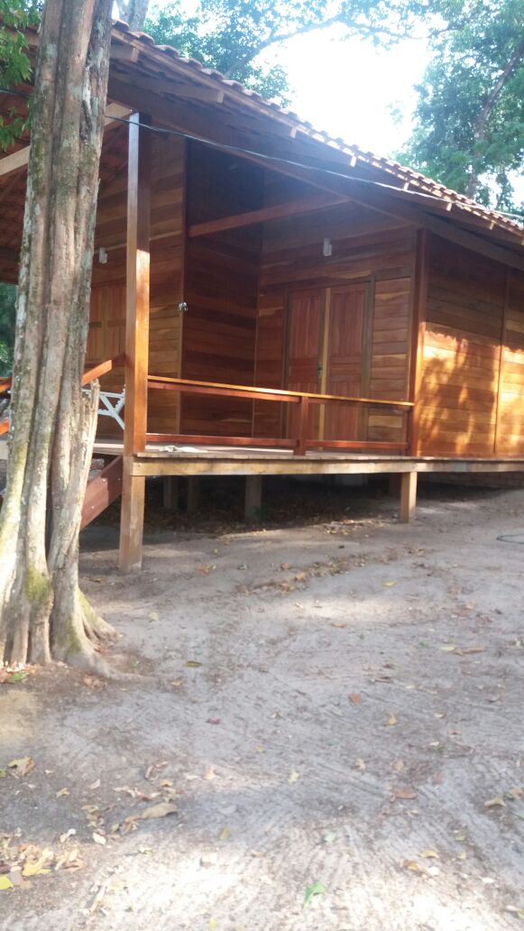 Chalé, com uma suíte equipado com uma cama para casal, outra para solteiro e mais um armador de rede. Possui também um armador na cozinha e vários na área externa. O chalé é todo em madeira de lei, com banheiro em alvenaria. Localiza-se de frente para o nascente, para a praia e para o rio Tapajós. Possui ar condicionado, fogão, geladeira e televisor