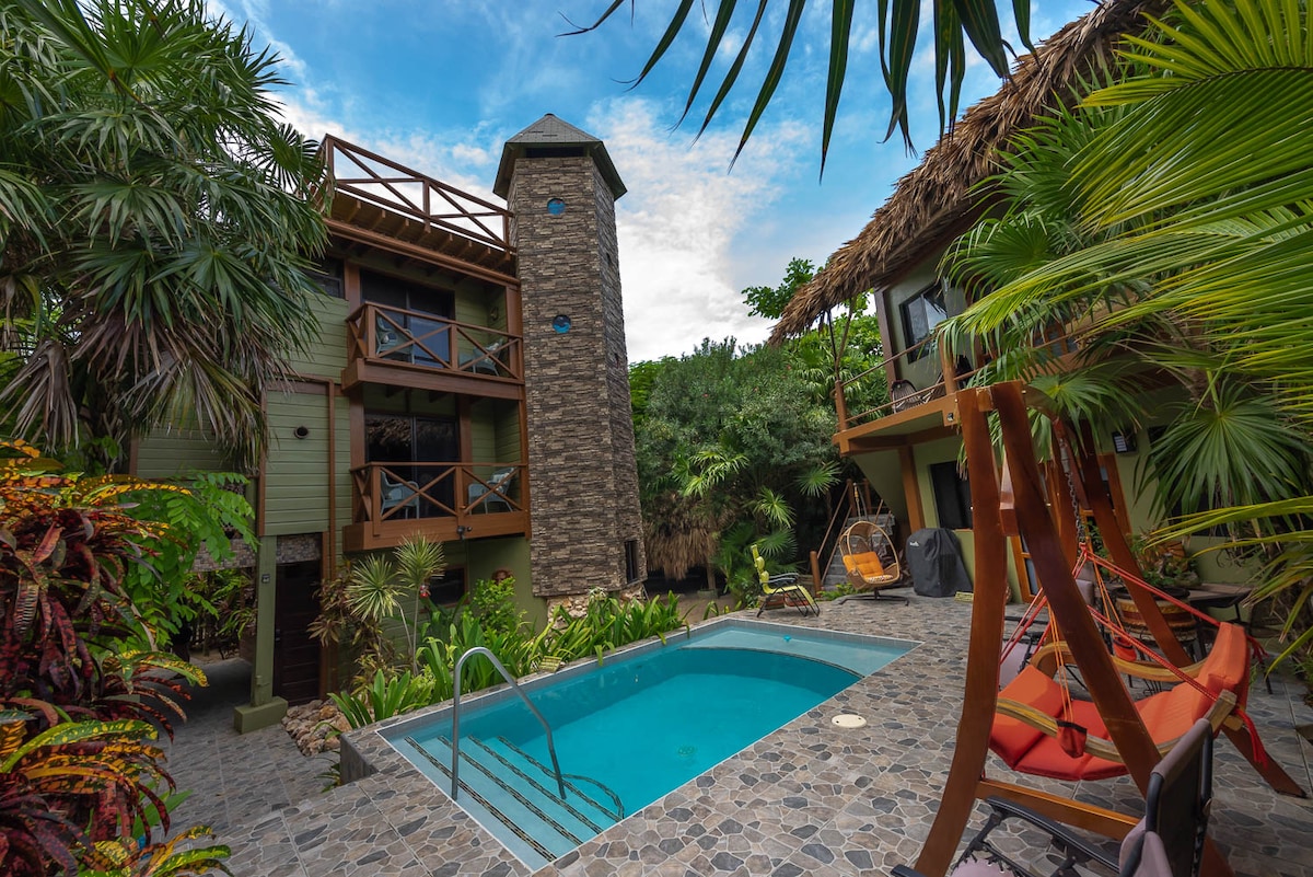 Apartman Pool House nalazi se u jednoj od najljepših ulica u Caye Caulkeru. Pogled se pruža na prelijepe vrtove i hladan privlačan bazen. To je jedini smještaj u objektu u vrlo privatnoj i mirnoj četvrti - samo nekoliko minuta (5) vožnje do grada. Preko puta je restoran za doručak i večeru. Objekat je priključen na električnu energiju sa ostrva, ali ima i solarnu energiju i električni generator za rezervu. Svi gosti na Airbnb-u moraju da imaju najmanje 25 godina.