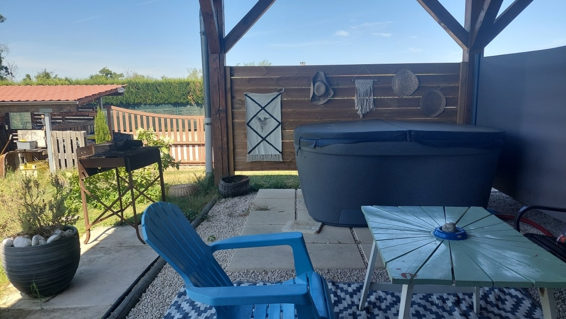 Logement pour 5 personnes, bébé compris. Chalet en bois de 46 m2 avec piscine et jacuzzi privatif pour une famille, entre amis ou en amoureux. Sauna sur réservation. 2 chambres: 1 pour un couple et la 2éme, grâce à son lit superposé: 3 enfants ou un 2ème couple. Sa cuisine équipée, ouverte sur la pièce à vivre, vous permettra de partager des moments conviviaux. Netflix et Canal+, pour vos soirées cinéma. Piscine chauffée de juin à septembre et ouverte toute l’année année.