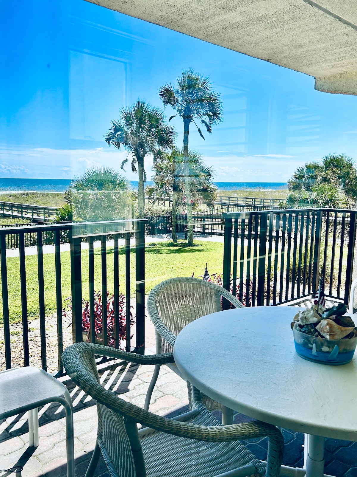 First floor villa, two bedrooms, two full bath beautifully updated Villa, within walking distance of the beach. The open floor plan provides a spacious feel and leads you to the massive screened in deck with a tropical wooded view. The Villa also has a sleeper sofa that sleeps 2 more! Just steps from pool and tennis courts. fully stocked for cooking ,kitchen table that seats 6 and washer and dryer. High speed internet and 2 smart TV's. First building in the complex. Free parking
