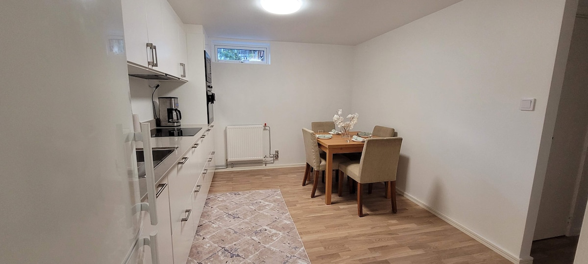 Nedavno renoviran stan na zapadnoj obali u odličnom stanju. Dnevni boravak sa kuhinjom, odvojena spavaća soba i toalet/tuš. Podno grejanje u svim prostorijama. Svi sadržaji kao što su veš mašina, mašina za pranje sudova, mikrotalasna pećnica, TV, roštilj itd. - Nekoliko minuta hoda do klipbada i malih peščanih uvala - 300 m do trajekta za Okeru, Honu itd. - 30 minuta direktnim autobusom do centra Geteborga