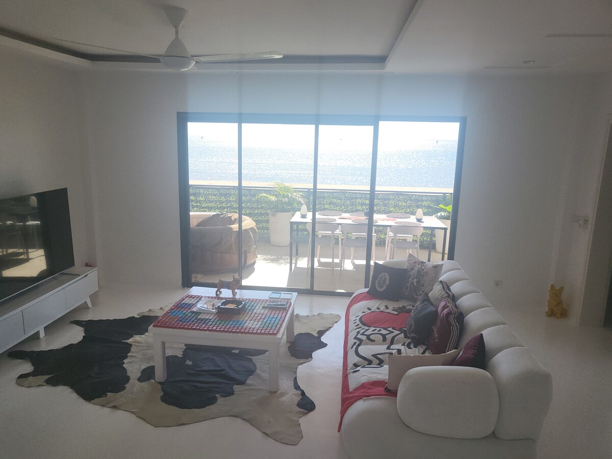 ✳︎Villa F6 indépendante de 173 m² à Verezambola, quartier résidentiel calme. À 30 min du centre-ville et 2 min de Green Palm/L’Espace Casablanca. ✳︎Idéale pour familles, amis ou long séjour. ✳︎4 chambres : à l’étage, suite parentale (lit king-size 180×120), deux chambres à deux lits simples, une chambre avec un lit simple + un lit double, 2 salles de bain. ✳︎RDC : living lumineux avec TV, cuisine moderne équipée, parking spacieux et sécurisé.