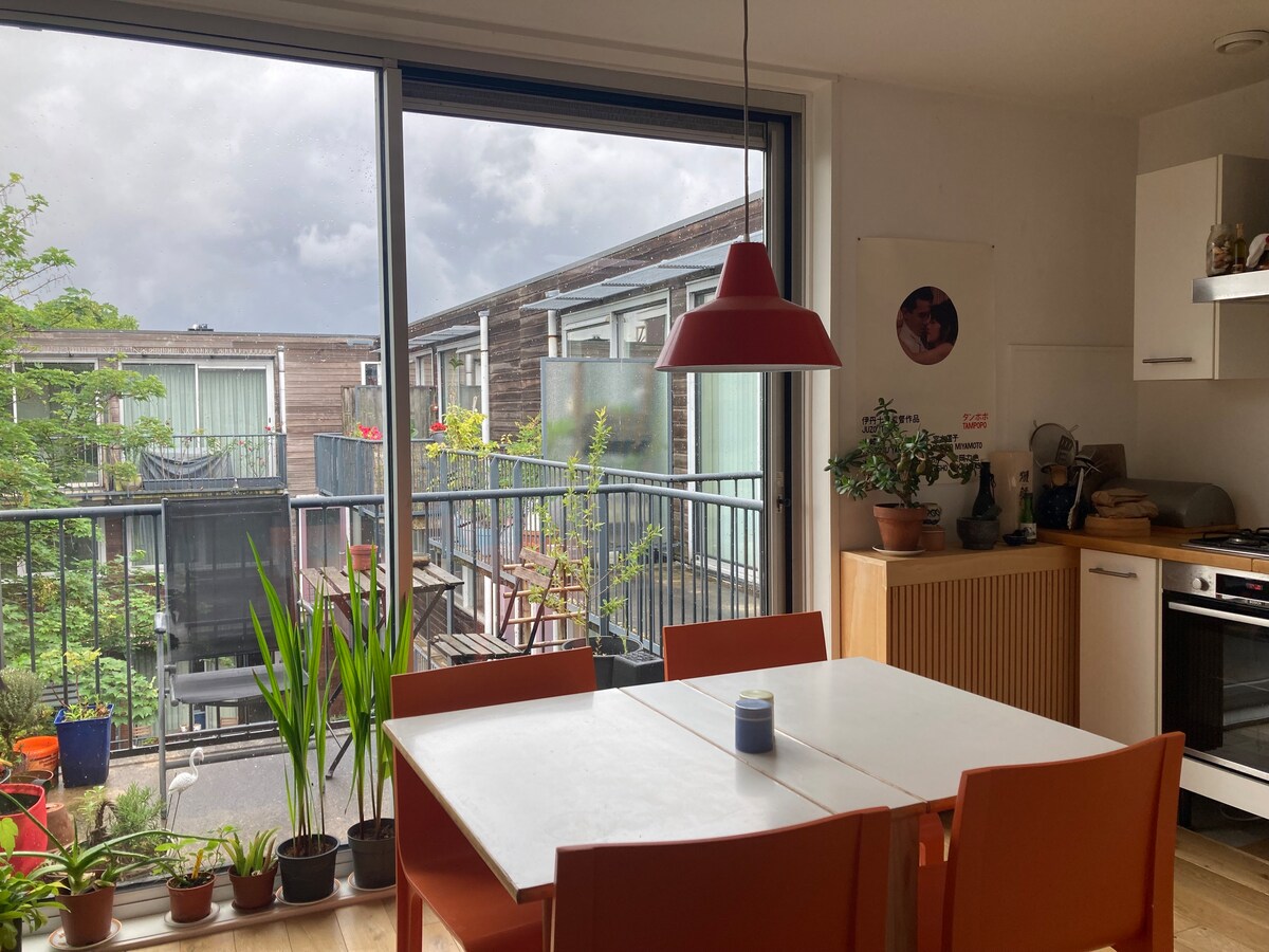 Prelijepo potkrovlje/studio - idealno za parove i dugoročne boravke. Privatno potkrovlje ispunjeno svjetlom (sa velikim krevetom) nalazi se vrlo blizu Weesperzijde, zapanjujuće avenije uz rijeku Amstel, okruženo lijepim kafićima i restoranima, brojnim kućama na brodu i nudi najbolji pogled na zalazak sunca u gradu. Možete da plivate u blizini u čistom Amstelu. Javni prevoz i prodavnice su iza ugla. To je zaista najbolje mjesto u gradu.
