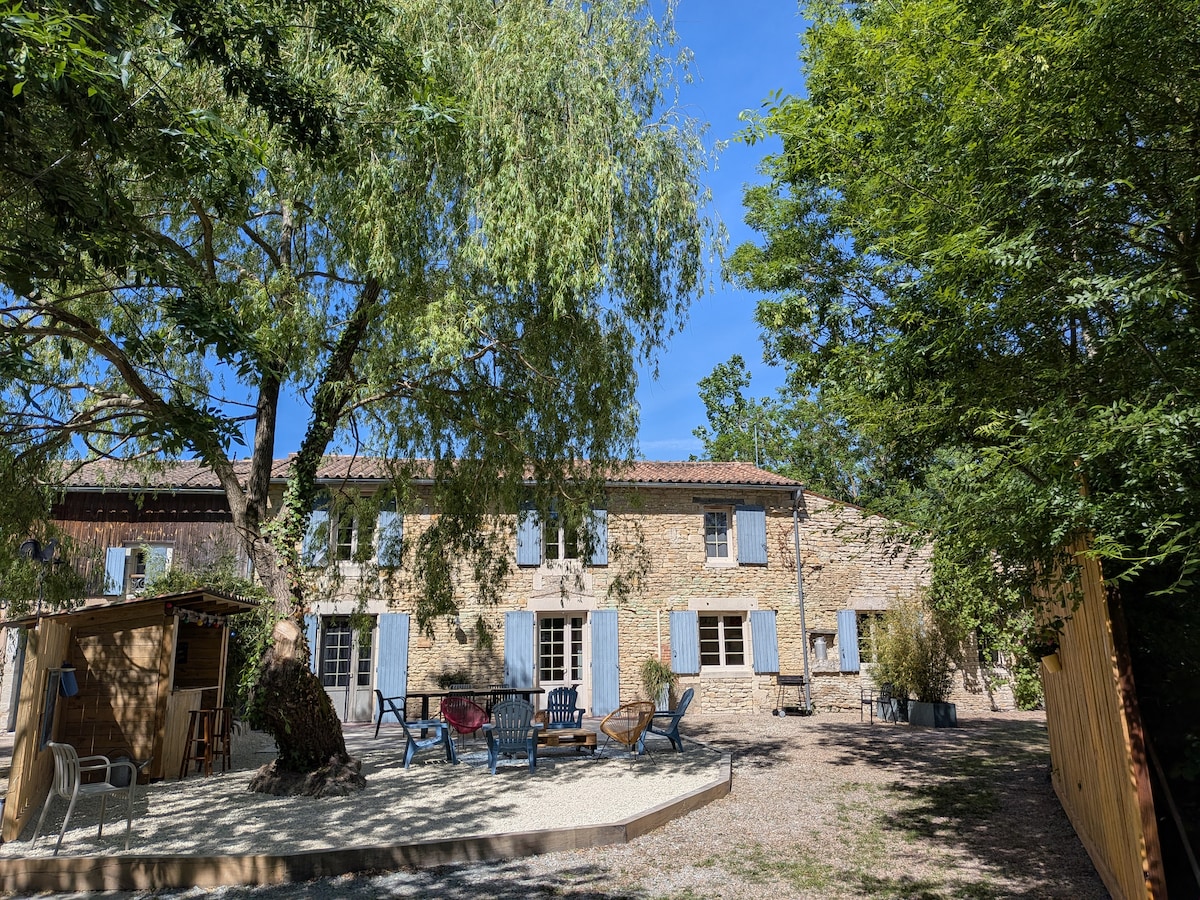 Smješten u mirnom selu Le Vanneau, La Marmotte vas dočekuje za odmor u prirodi između autentičnosti i moderne udobnosti. ✨ Toplo mjesto, idealno za porodicu ili grupe prijatelja, u srcu Marais Poitevin. 🛏️ 4 spavaće sobe / 2 kupatila • 1 spavaća soba + kupatilo u prizemlju • 3 spavaće sobe + 1 kupatilo na spratu 🍽️ Potpuno opremljena kuhinja 🌺 Ograđena i šumovita bašta, koja nudi nekoliko prostora za odmor. Usluga posteljine 🌸, sa nameštenim krevetima na zahtev.