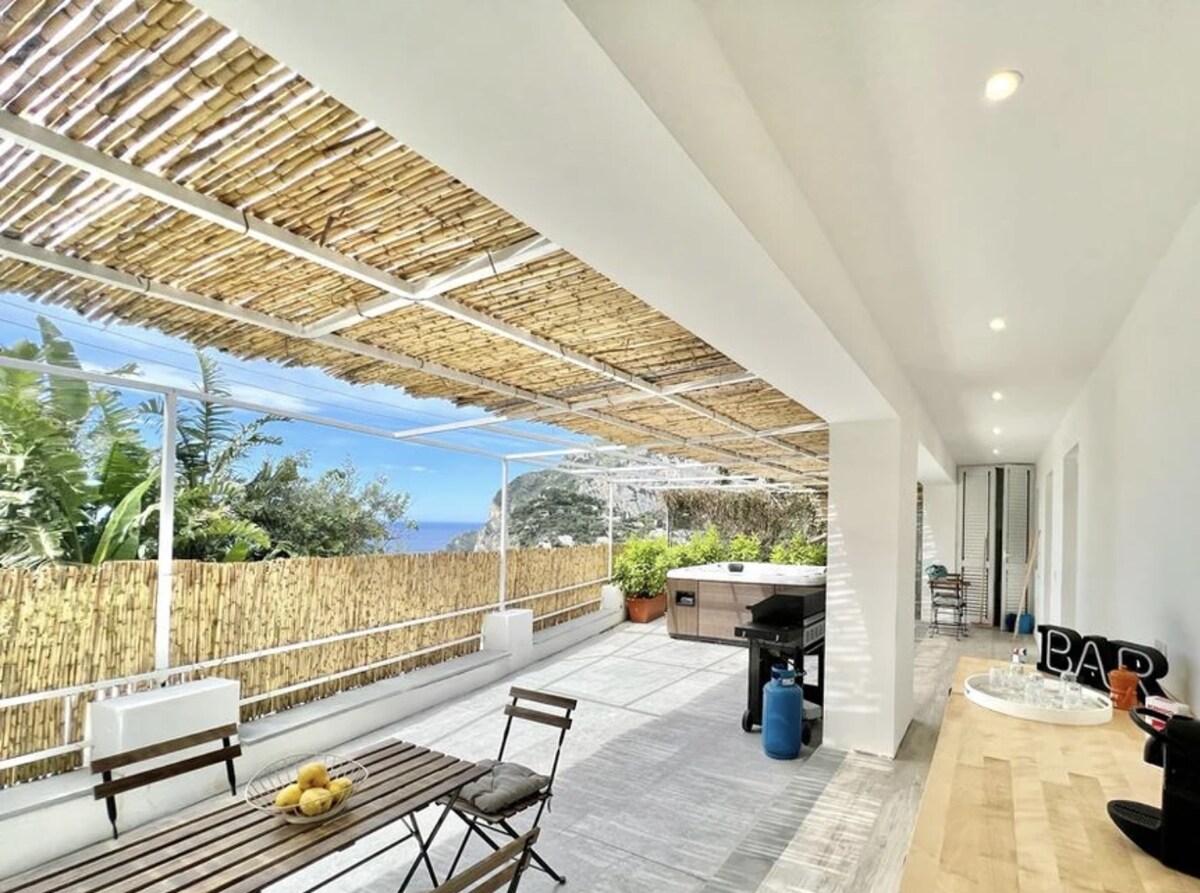 Stan u vili sa prelepom panoramskom terasom sa pogledom na more, zalivom Marina Grande, planinom Tiberio, poluostrvom Sorrento i Napuljskim zalivom kojim dominira Vezuv. Idealno prebivalište za romantične parove. Luka Marina Grande, sa svojim selom i uspinjačom koja vodi Kapri, udaljena je 5 minuta hoda.