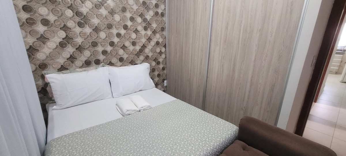 vi! ili vi i vaša porodica bićete blizu svega kada boravite u ovom super udobnom i veoma dobro pozicioniranom stanu! praktično pored autobuske stanice i samo 800 metara od tržnog centra Brasil Park, stan sa osnovnim kuhinjskim priborom i čišćenjem, 1 apartman, 1 spavaća soba sa 2 kreveta za jednu osobu, 1 društveno kupatilo, 5g internet, moderan TV, 1 parking mesto, super tih i porodični kondominijum.