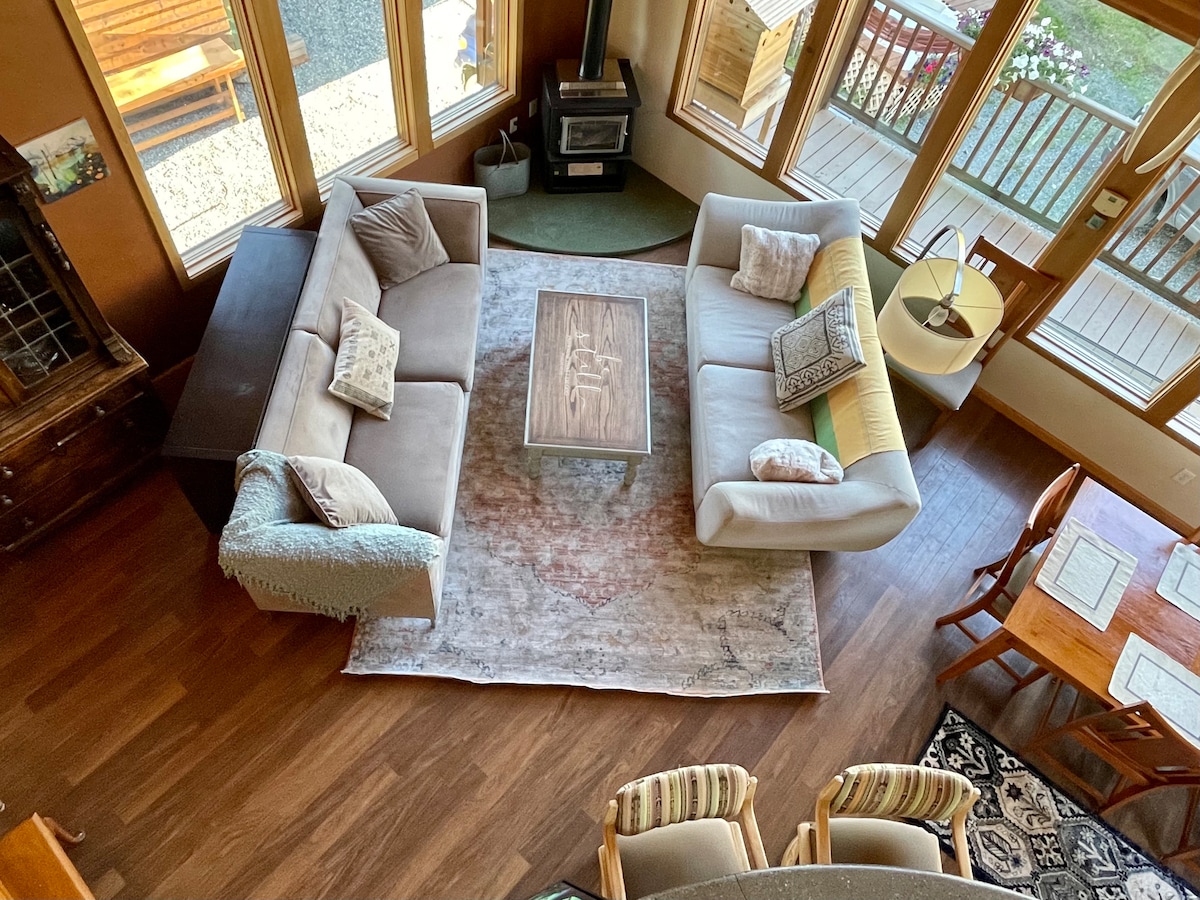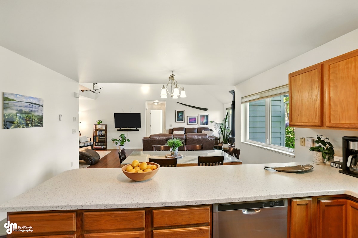 Otkrijte prirodna čuda i gradski luksuz Ankoridža iz novouređenog obalnog mesta! Velika kuća je pričvršćena za obalnu brvnaru, istorijsku brvnaru u centru grada iz 1915. godine koja je takođe navedena na Airbnb-u. Obalno mesto nudi spavanje za 9 osoba u prozračnom i prostranom luksuznom domu sa mnogo dodatnih sadržaja. Budući da je najbliži bnb objekat centru grada, staza uz obalu i čuvena šetnica parka, to je idealno mesto za istraživanje Ankoridža i mnogih avantura koje se mogu naći na Južnoj Centralnoj Aljasci!