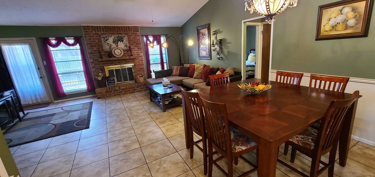 Uživajte u ovom drugom domu. McDonald 's, Tacobell, Pizza Hut, Dairy Queen i Walmart su udaljeni manje od 5 minuta. To je kupatilo sa 3 kreveta i 1,5. Centralna klima i grijanje. Bračni krevet (širine 150-179 cm), bračni krevet (širine 150-179 cm) i bračni krevet (širine 150-179 Pametne televizore ćete pronaći u svakoj spavaćoj sobi. Privatno zadnje dvorište sa košarkaškim obručem i roštiljem. Optički Wi-Fi.