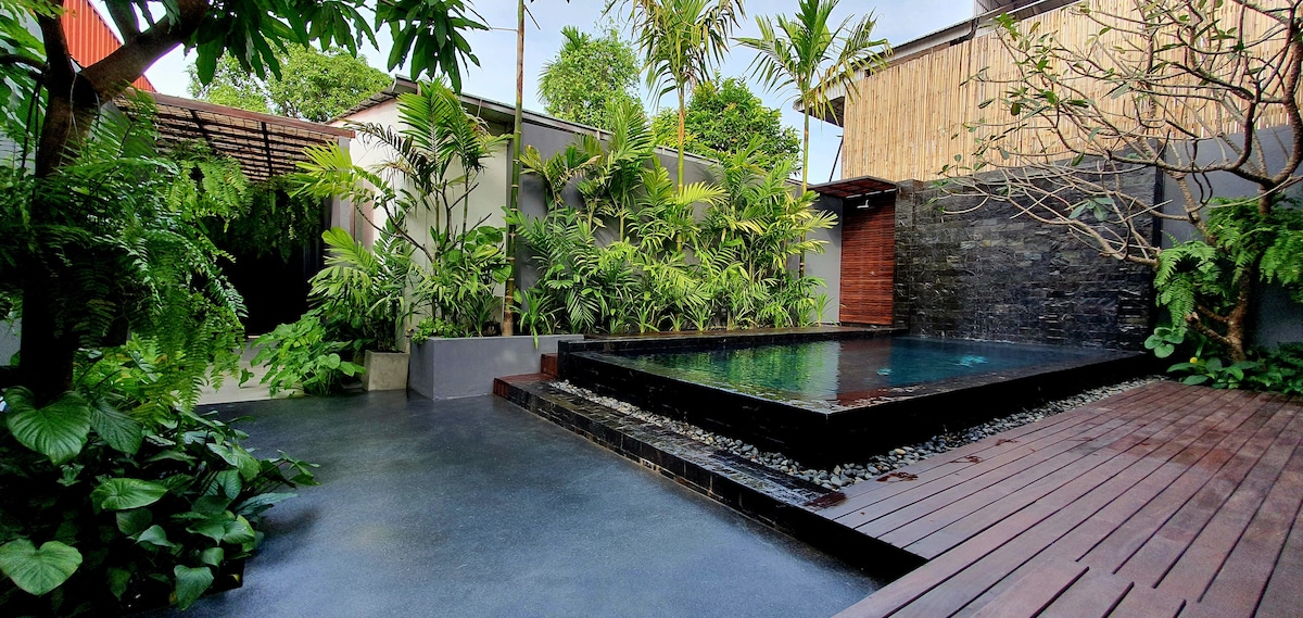 Opustite se u tropskoj oazi sa privatnim bazenom, salonom, udobnim dušekom na jastuku i pametnim uređajima. Naša vila nudi luksuz, udobnost i privatnost u srcu Siem Reapa. Posjedujemo „omiljenu gostima” The Studio Villa Siem Reap. Možete nam vjerovati da ćemo pružiti isti kvalitet i uslugu u našoj novoj vili. Nalazimo se u mirnoj ulici samo 600 metara od ulice Pab, gdje možete pronaći razne restorane, barove i opcije za noćni život. Samo 2 minuta šetnje do obale rijeke i još mnogo toga!