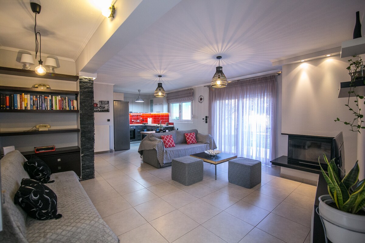 Udobna vila „Pogled na planinu“ na Nacionalnom putu Trikala-Ioannina. 40 minuta od Trikale, 25 minuta od Meteore Kalampaka, 30 minuta od fabulus Metsova, 55 minuta od Janjine i 40 minuta od Grevene. Nalazi se u blizini puta Egnatia, 15 minuta. Odlična lokacija Udobne vile, pruža vam priliku da posetite sjajno mesto - svakodnevno. Sa Smart TV-om obezbeđujemo Netflix! U decembru možete da posetite fantastični „Mil vilenjaka“ u Trikali, da se setite detinjstva i provedete čarobne odmore!