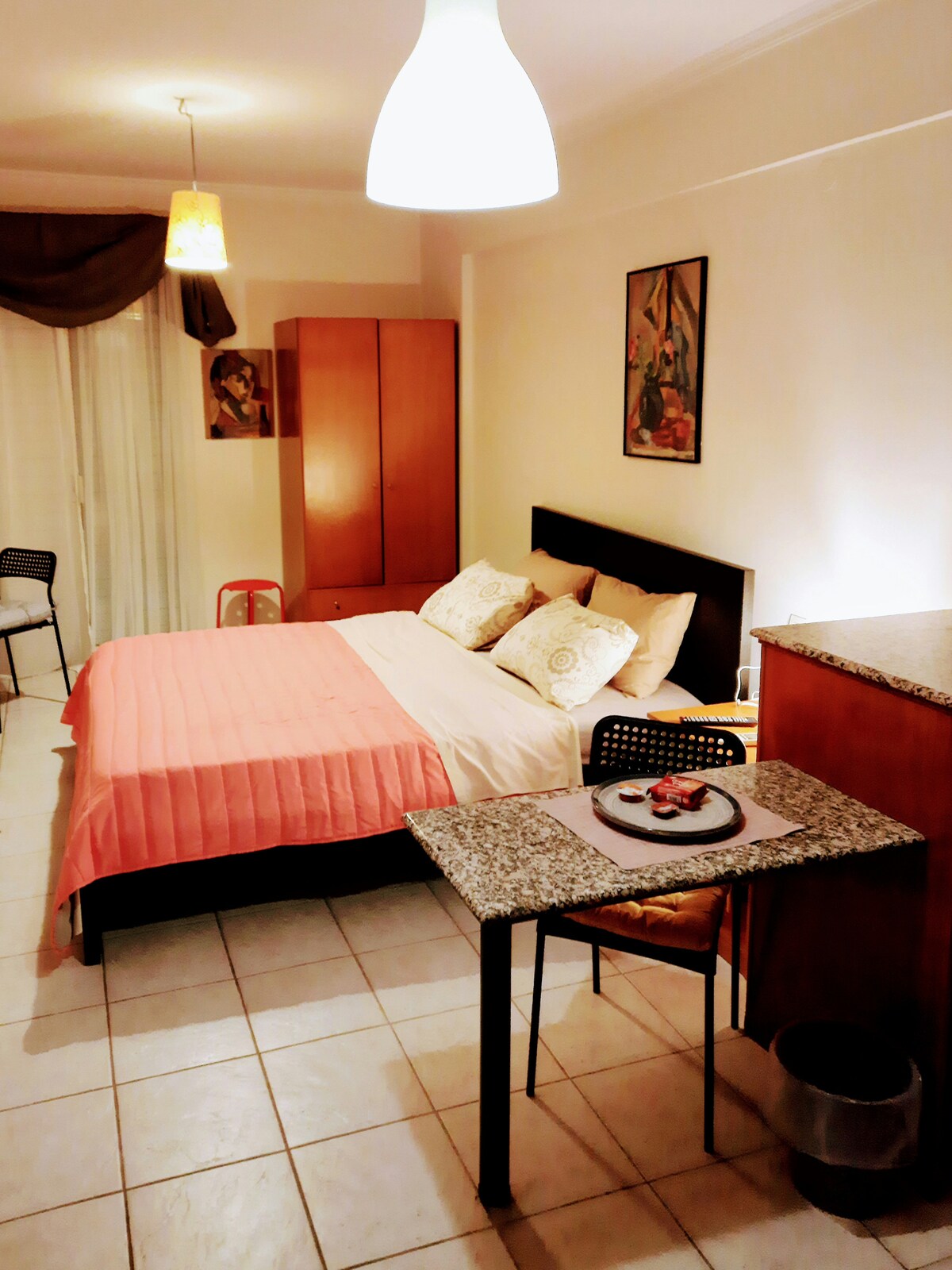 Šarmantna i udobna ,renovirana gostinjska kuća pored Univerziteta u Patronu u mirnom području koje kombinuje planinu i more. 2,7 km od Univerzitetske bolnice Patras, 1 km od trg Univerziteta. Studio obuhvata bračni krevet, kauč na razvlačenje, potpuno renoviran , klima-uređaj i centralno grejanje. Objekat ima poboljšanu brzinu interneta do 100 mbps( 75 mbps prosečne brzine) gde je idealan za zadatke putem računara