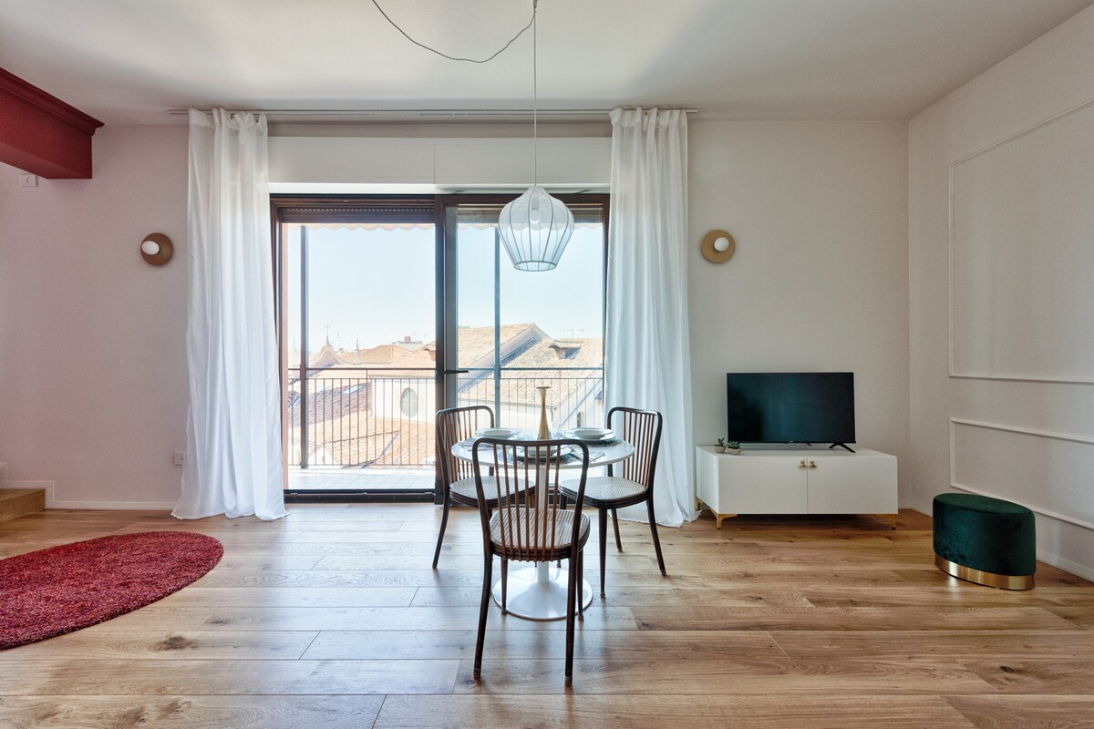 Experience Treviso at its most authentic. This elegant suite, with a private terrace and free covered parking, is just steps from the Duomo and Piazza dei Signori, right in the historic center. Perfect for couples, business travelers, or a romantic weekend, it offers modern comfort, a prime location, and the freedom to explore the city on foot. Venice, Padua, and Verona are easy to reach by train or bus—just minutes from home.
