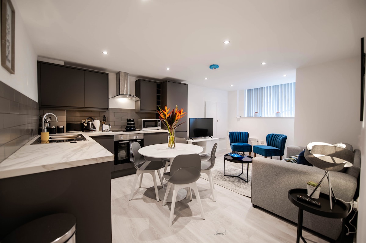 Stan u prizemlju s 1 spavaćom sobom. Sastoji se od zasebnog salona, kuhinje, spavaće sobe i kupatila sa tušem. Brza Wi-Fi veza i Smart TV Stan je dobro opremljen sa dosta mesta za 2 osobe. Nalazi se u blizini mnogih lokalnih sadržaja Inc. Mnoge prodavnice u krugu od 100 metara, fudbalski klub Blekpul udaljen je 5 minuta hoda, šetalište udaljeno 15 minuta hoda i Stenli Park/zoološki vrt 18-25 minuta hoda. Privatno šljunčano dvorište u zadnjem delu objekta koji će koristiti gosti. Mnogo je parkinga na ulici neposredno ispred objekta.