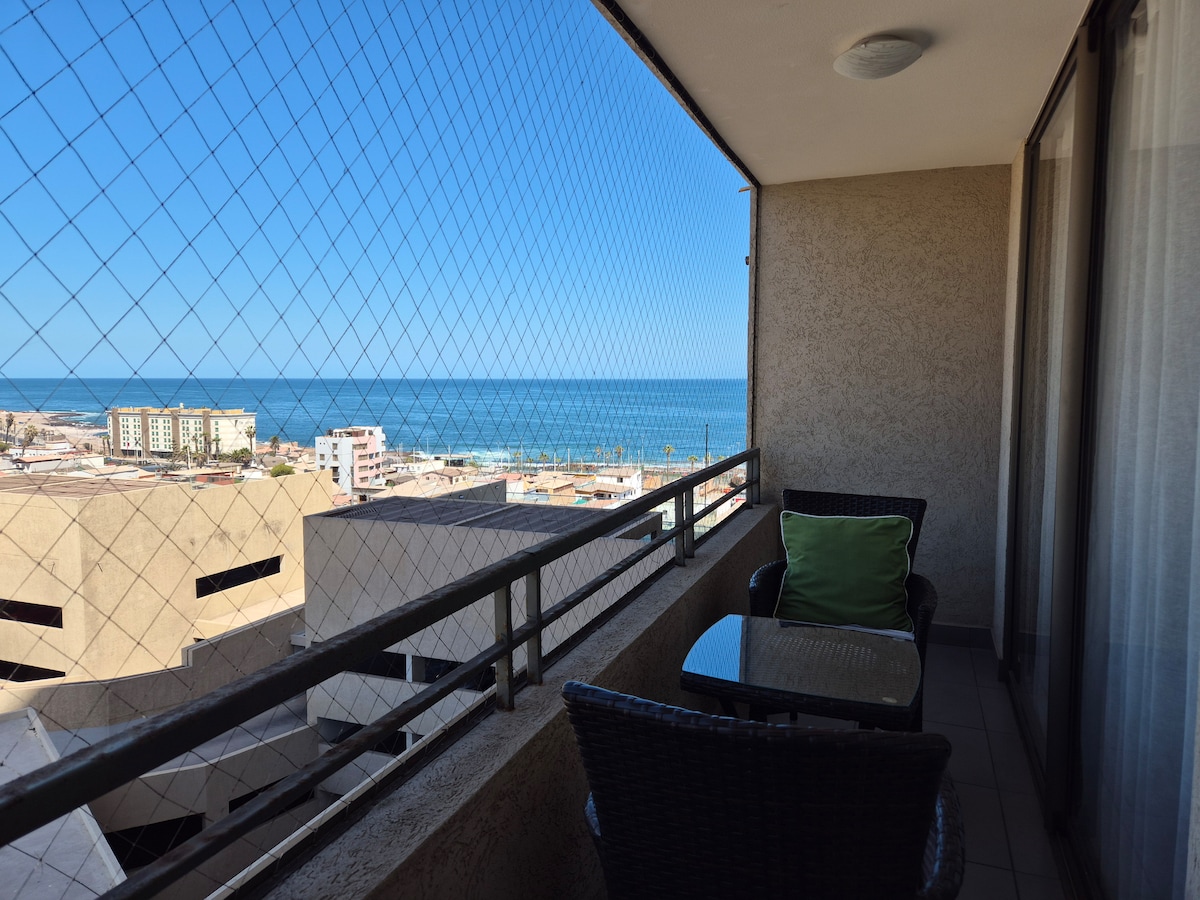 ARRIENDO DEPARTAMENTO 2 DORMITORIOS - IVA incluido en el precio* Departamento con vista al mar & Parque Brasil; localizado en una de las mejores áreas de la ciudad: BARRIO BRASIL- Barrio Gastronómico, ideal para viajes de Negocio - EXPONOR 2026 El departamento incluye: —WIFI - SMART TV & CABLE - LUZ - AGUA CALIENTE - ESTACIONAMIENTO PRIVADO: 1 auto máximo — * Factura Arriendo No incluye tarifa de comisión de servicio de Airbnb