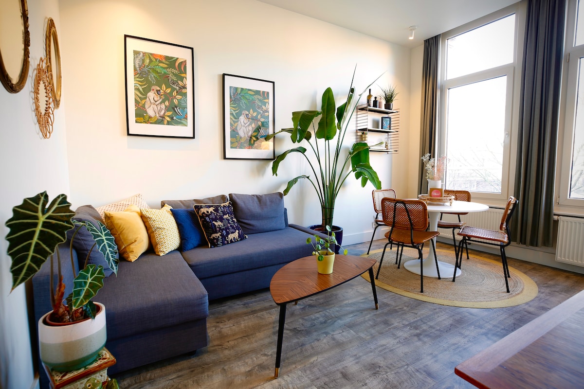 Na ovoj jedinstvenoj lokaciji u samom srcu živahnog 'Zuida' Antverpena, nudimo vam toplu dobrodošlicu u naš elegantni, pažljivo renovirani dupleks stan za savršen boravak u našem prelijepom gradu. Imamo potpuno opremljenu otvorenu kuhinju, 2 spavaće sobe, kupatilo i odvojeni toalet. Imajte na umu da se do stana može doći samo stepenicama do 2. sprata. Pošto smo u apsolutnom epicentru najudobnijih restorana i barova, tokom vikenda moramo da vas upozorimo da ćete se zabaviti!