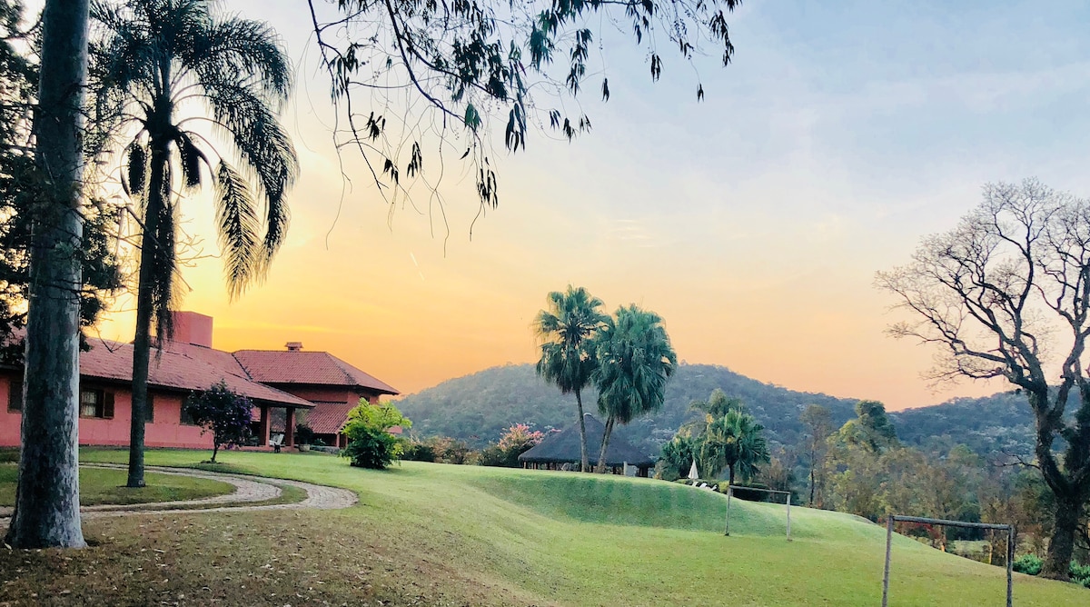 Doživite seoski život sa odličnim smještajima, Optička vlakna 100MG, 45’ od Sao Paula, nekoliko metara od Kastelo Branka i u blizini Catarina Outlet-a. Asfalto do vrata. 5 spavaćih soba, 4 apartmana. Može da primi 18 gostiju. 2 pomoćne kuće po dogovoru odvojeno (+ 19 hosp). Teniski teren na plaži (travnati), bazen, kamin, igraonica, dječja ljuljaška, klackalica, stolni tenis itd. Bez ograničenja glasne muzike, idealno za vaše druženje. Vaš kućni ljubimac je ovdje veoma dobrodošao!