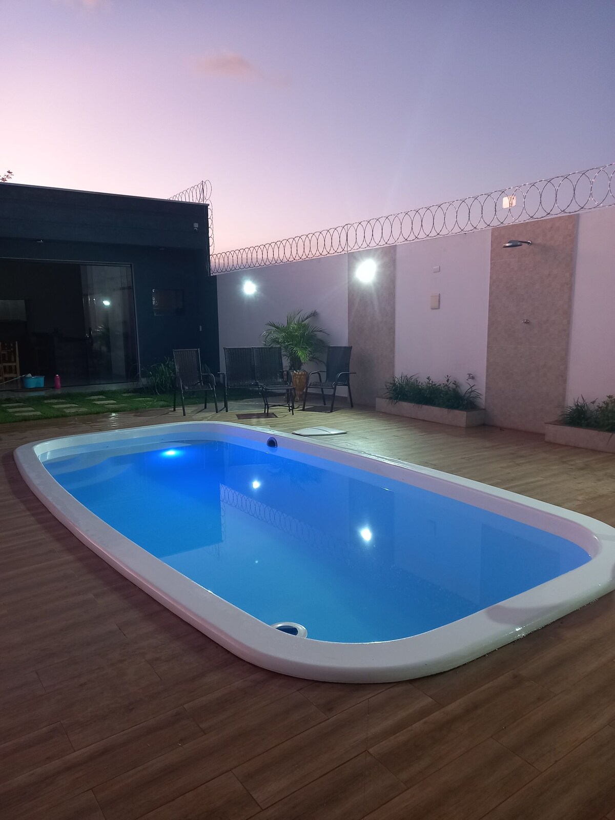 Udobna čakra sa 3 spavaće sobe (2 apartmana), dnevnim boravkom sa kaučem na razvlačenje i pametnim TV-om, kuhinjom i kupatilom za goste. Nudi prostor za slobodno vrijeme sa bilijarskim stolom i kupatilom na otvorenom. Strateška lokacija 10 minuta od centra Aračoaje da Sera, na putu za Kapelu do Alto. Pravila uključuju ograničenja u pogledu događaja, zabava i neovlašćenih posjeta. Ima vanjsku kameru za vašu bezbjednost bez snimanja zvuka. Alarm za dim, dobro zatvorena i privatna lokacija.