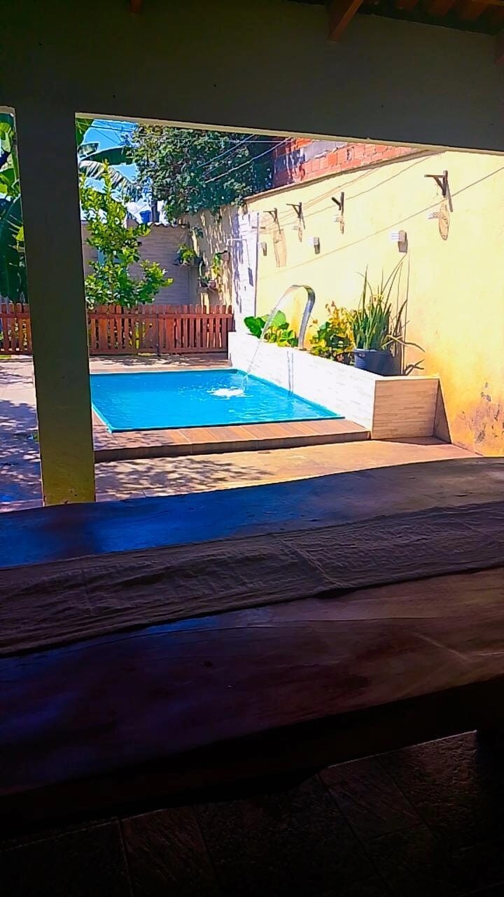 Relaxe com toda a família nesta acomodação tranquila. a casa é ideal para passar seus dias curtindo uma piscina , churrasqueira,uma acomodação tranquila ,o lugar e bem tranquilo para passar seus dias ideal de tranquilidade ,permitimos animais de estimação,som moderado ,o espaço fornece 2 cama de casal, 2rede de descanso ,mas e permitido o grupo levar mas pessoas e levarem seus colchão e permitidos eventos ,está proibido o som automotivo ,apenas caixas de som ,o espaço agrega até 60 pessoas