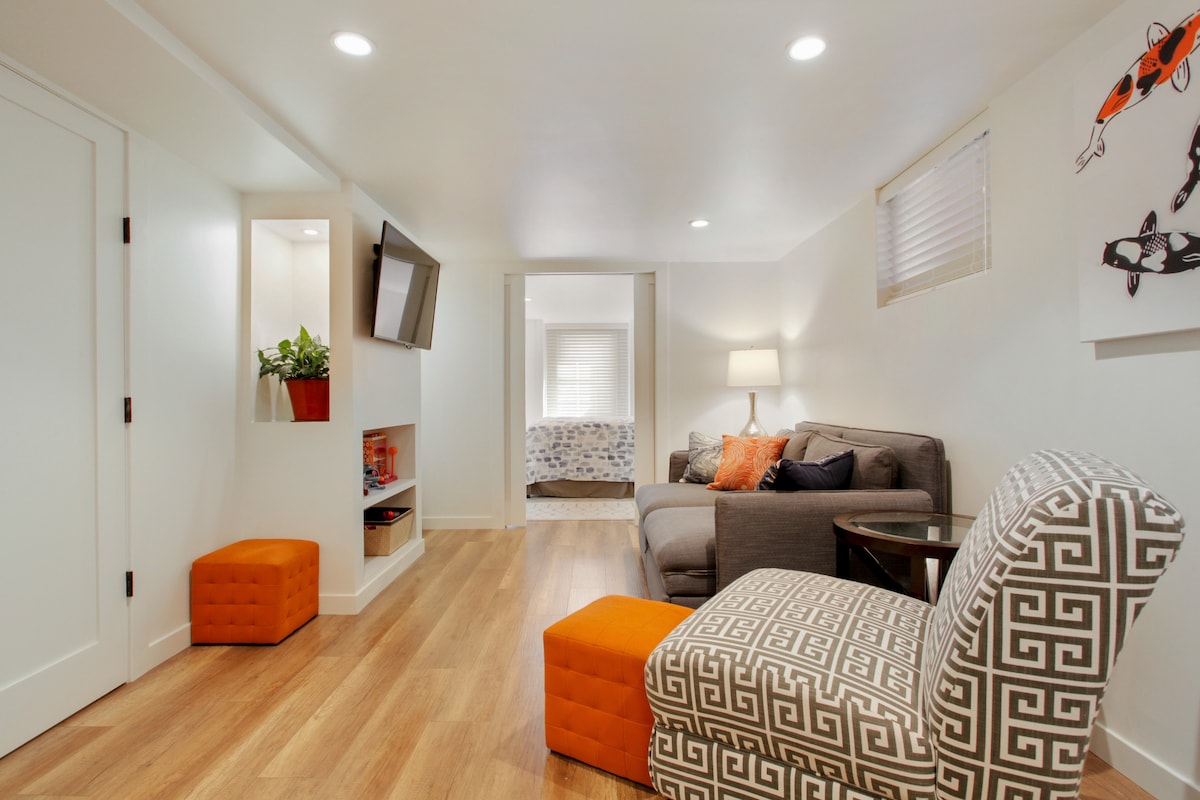 Ovaj jedinstveni udobni apartman za goste savršen je za 1-2 osobe koje putuju kroz Denver na odmor, poslovno putovanje ili da budu u blizini prijatelja i porodice! Nudi potpuno opremljenu kuhinju, spavaću sobu i kupatilo, dva televizora s ravnim ekranom, parking mjesto i udoban kauč na rasklapanje! U blizini restorana u hangaru Lori, niz ulicu od više staza i parkova (Juta Park), 25 minuta do aerodroma u Denveru, 12 minuta do kampusa CU Anschutz, manje od sat vremena do planina i još mnogo toga! To je preuređena garaža za jedan automobil.