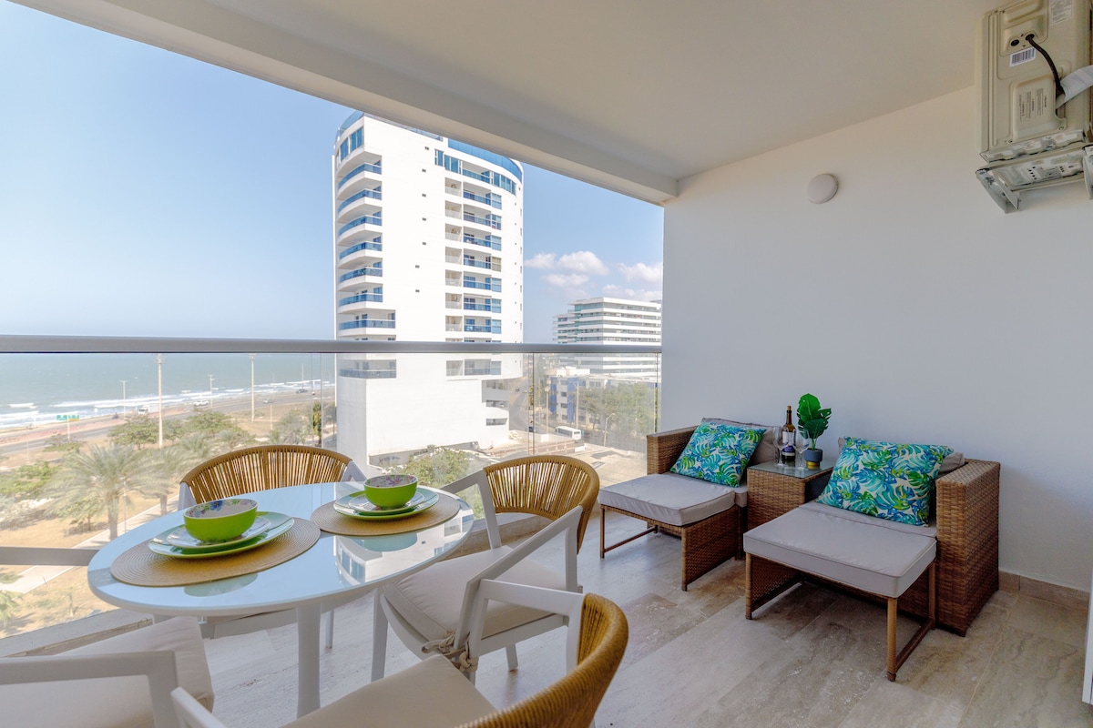 Ekskluzivni stan na 30. spratu Morros Siti sa nevjerovatnim i zadivljujućim pogledom na more i istorijski centar. Glavna spavaća soba s direktnim pogledom na more i pristupom balkonu. Potpuno opremljena kuhinja, mašina za pranje i sušenje veša 2 u 1, Smart TV od 60inča, Wi-Fi sa svjetlovodnim kablovima od 500 MB. Bokagrande uz plažu sa luksuznim sadržajima: bazen, đakuzi, tursko kupatilo i teretana. Besplatan parking. Idealno za parove koji traže najekskluzivniji doživljaj sa najvišeg dostupnog sprata u cijeloj Kartaheni
