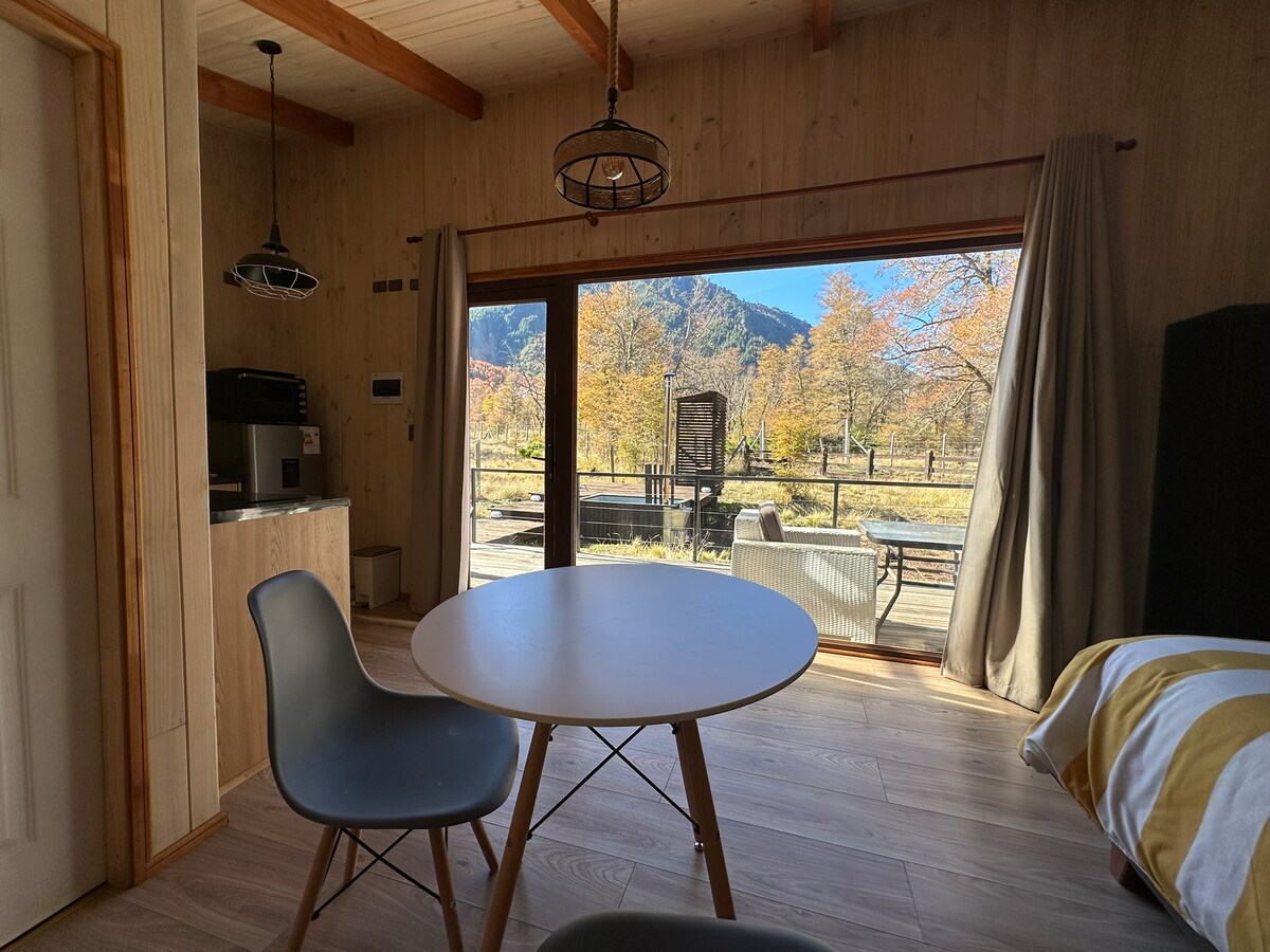 Dobro došli u našu udobnu brvnaru u Malalcahuello, vašem intimnom odmoru u srcu južnog Čilea! Smještena u zadivljujućem prirodnom okruženju, naša brvnara je savršeno okruženje za romantični odmor ili avanturu za dvoje. Okruženi bujnim zelenilom i veličanstvenim planinama, uživaćete u spokoju i sirovoj ljepoti prirode. Osim toga, u blizini ćete pronaći pješačke staze, slikovite biciklističke staze i skijaški centar za beskrajnu zabavu na otvorenom!