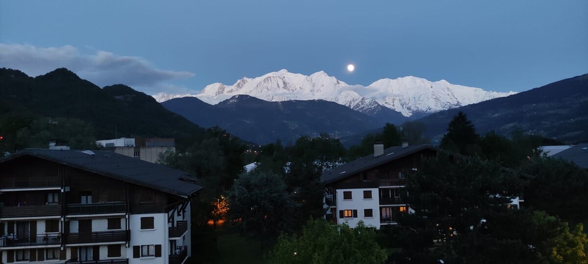 Klimatizovan studio sa balkonom okrenutim prema Mont Blanku koji se nalazi na 4. spratu sa liftom u rezidenciji u planinskoj kući. Zeleni park i privatni parking. Veliki prozor okrenut ka jugoistoku na Mont Blanc, nije zanemaren. Mirno okruženje u blizini bolnice, tenisa, bazena itd. U srcu masiva Monblan u blizini Šamonija, Komblouksa, Megevea i sl. za skijanje, brdski biciklizam i planinarenje. Udoban studio: krevet na razvlačenje, toalet, kupatilo i opremljena kuhinja. Peškiri/posteljina su uključeni. Centar grada, 10 minuta hoda.