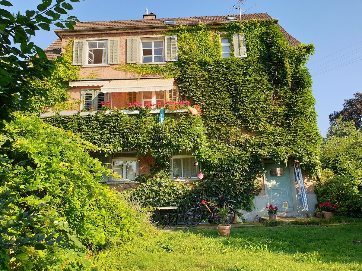 Naš 2,5-sobni stan se nalazi na mirnoj lokaciji u staroj seoskoj kući: 5 minuta hoda od jezera i mjesta za kupanje, 5 minuta od najbliže prodavnice i željezničke stanice. Stan je udoban i praktičan. Izložene grede i hrastov parket zrače toplinu. U bašti vas čeka udoban prostor za sjedenje, a ima i dovoljno prostora i opreme za igru za djecu. Ima parking mjesto i prostor za odlaganje bicikala.