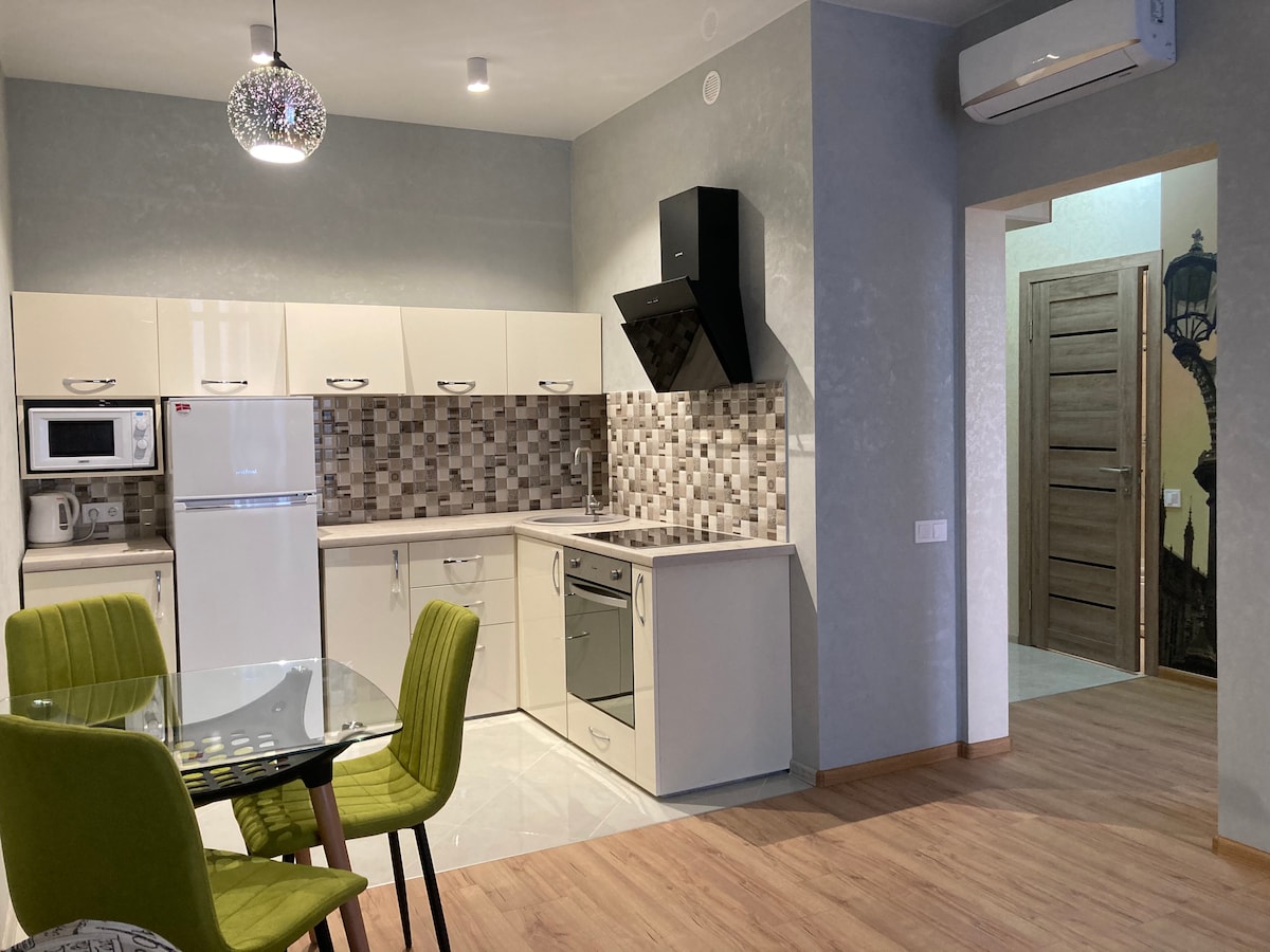 Stan se nalazi u okrugu Primorski,Arkadiji, novom stambenom kompleksu 36 bisera. Arcadia-center odmarališta i zabavnog života,blizina morskog obilja cveća i zelenila. Arkadija - 5 minuta do mora i zabave u Odesi, najpopularnijeg područja, područja restorana i klubova na plaži. Opis:moderan stan sa svime što vam je potrebno za udoban odmor! Stan je klimatizovan, Smart TV za 56 inča, kao i sve što je potrebno za udoban boravak!