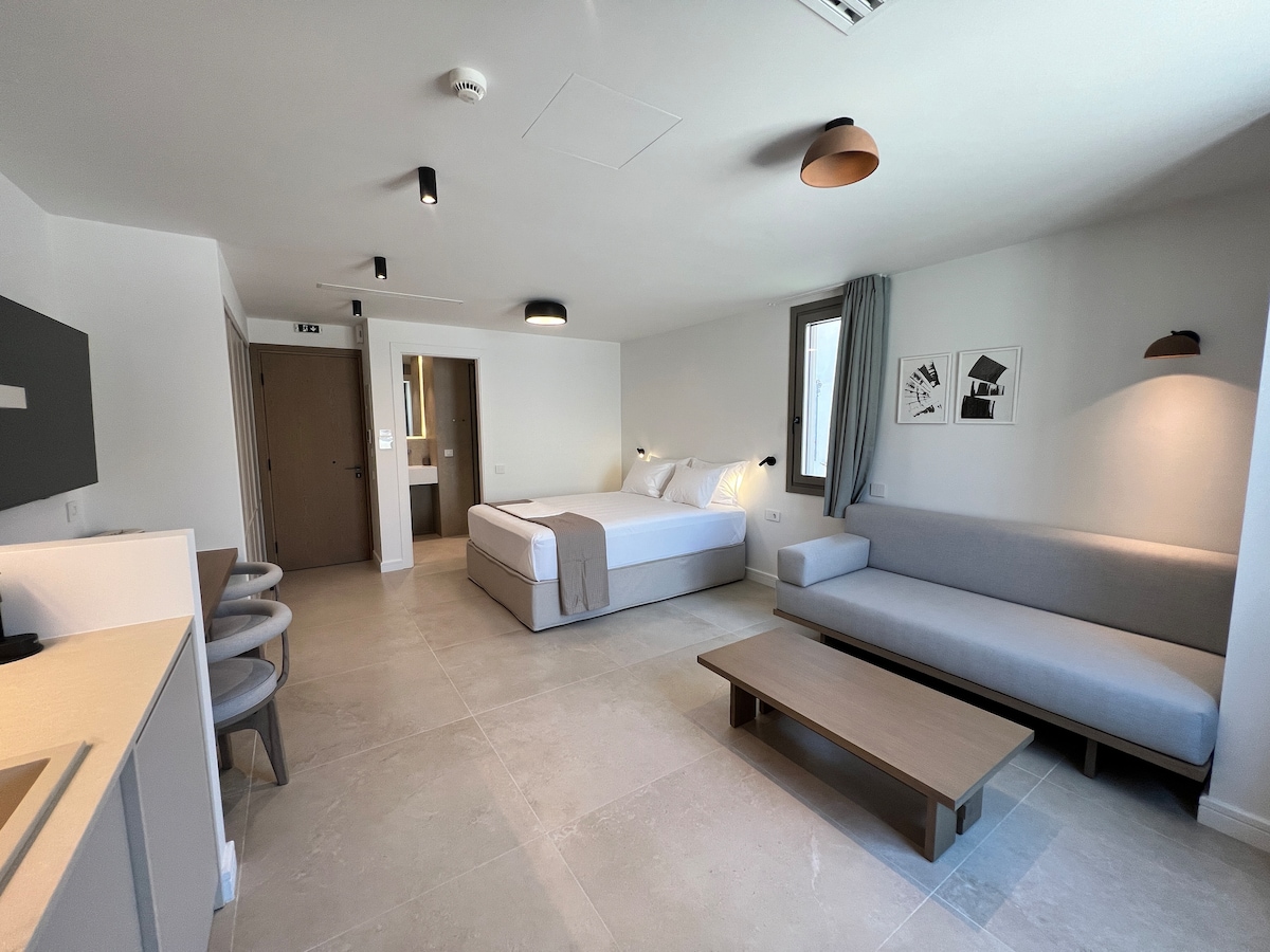 A 50m² penthouse apartment (bedroom, living room, bathroom & kitchenette) roof-garden of 150m²- wonderful view of Palamidi castle & central park. Between new & old part of town. Easy parking. Lift. Sights, shops, bars, restaurants, banks & beach of Arvanitia, within walking distance.