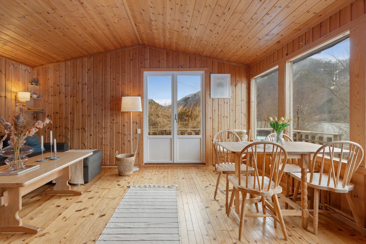 Sunčana i dobro održavana brvnara u slikovitom okruženju s panoramskim pogledom na Lustrafjorden i veličanstveni Feigefosen. Ovde možete uživati u mirnom odmoru uz sunce od jutra do večeri, okruženi fjordovima, planinama i vodopadima. Brvnara je savršena za porodice, parove ili planinare koji žele da budu blizu spektakularne prirode i aktivnosti tokom cele godine. Ovo je idealna polazna tačka za: ✔ Planinarenje ✔ Migracija pisama ✔ Planinarske ture ✔ Skijanje ✔ Porodični odmor pored fjorda