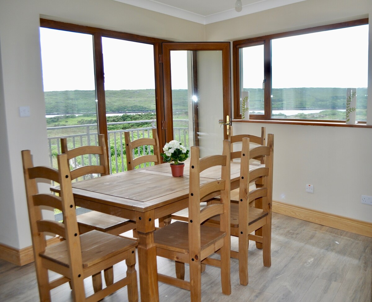 Stan na imanju: panoramski pogled na zaliv Klifden iz ovog novoizgrađenog savremenog stana u čuvenom Skaj Roud-u. Savršeno proporcionalan prostor sa kompletnom kuhinjom, trpezarijom i dnevnim prostorom, bračnom spavaćom sobom sa susednim kupatilom i privatnom terasom sa pogledom na more. Morden, elegantan i luksuzan smeštaj na savršenoj slikovitoj lokaciji za istraživanje Klifdena i Konemare. Vaš domaćin, Eileen, živi u zajedničkoj kući; očekujte topli cčad míle fáilte dok poštujete svoju privatnost.