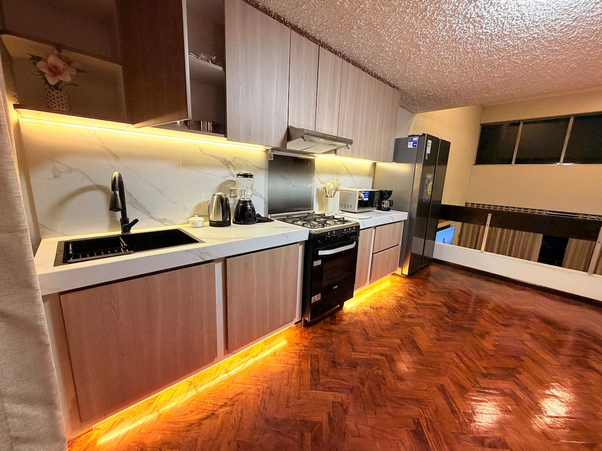 Udoban moderan stan u srcu Arekipe, savršen za parove, putnike koji putuju sami ili poslovne goste. Uživajte u svijetlom dnevnom boravku, potpuno opremljenoj kuhinji, udobnoj spavaćoj sobi, čistom kupatilu i brzom Wi-Fi mreži. Smješten nekoliko minuta od ključnih atrakcija, restorana i javnog prevoza, nudi jednostavan pristup najvažnijim znamenitostima grada. Mirno i praktično utočište za nezaboravan boravak. Fleksibilna prijava i pažljiv domaćin spreman da vam pomogne.