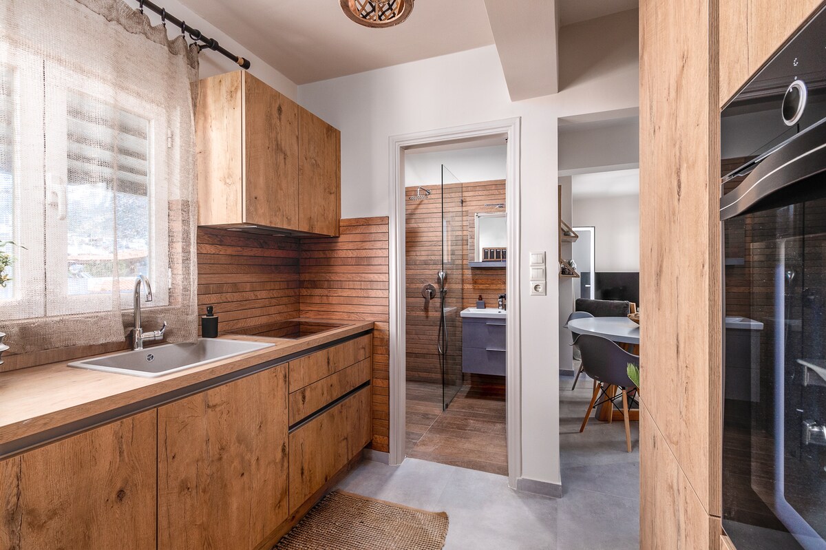 The modern renovated 60m2 5th floor penthouse apartment is located just 4min walk away from the metro station Panormou on the airport line, a ideal quiet 'basecamp' for Athens exploration! Pažljivo dizajniran i ukrašen od strane mene kao arhitekta, stan je potpuno opremljen sa svime što želi, dva pametna televizora (u spavaćoj sobi i dnevnoj sobi) i slatkim kutkom za kamin. Dva ogromna balkona sa biljkama sa obje strane sa zadivljujućim panoramskim pogledom na grad i planinu Imitos. Uživajte!