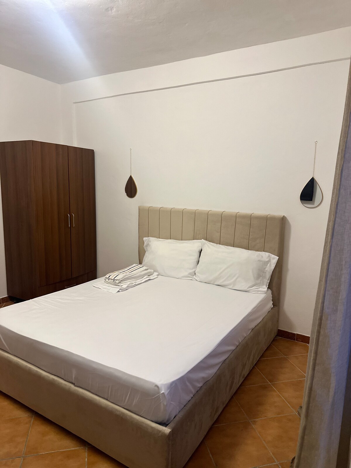 Dobro došli u naš prelijepi studio na vrhu brda, smješten u četvrti „Uji I Ftohte” u Lungomareu. Uživajte u potpuno opremljenoj kuhinji, udobnom prostoru za spavanje, modernom kupatilu i prostranom balkonu s kojeg se pruža pogled na more koji oduzima dah. Sve plaže, kafići, pijace i restorani udaljeni su 5-15 minuta hoda. Autobuska stanica, udaljena samo 4 minuta, nudi jednostavan pristup živopisnom centru grada Vlora za samo 35 centi. Samostalna prijava i odjava čine vaš boravak još praktičnijim.