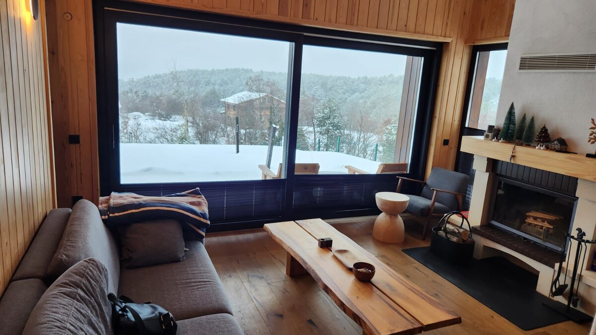 In the heart of nature Dublex Wooden Mountain Chalet in an area of 6000mt2 with 2 rooms 6 beds & 1 sorabed for two pp. available up to 8 people with a beautiful view of mountains. There are creeks, lakes and waterfalls around.