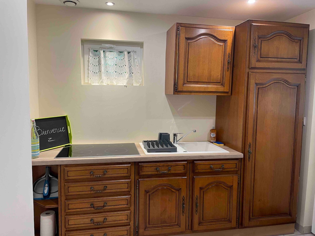 Uživajte sa svojom porodicom u ovom fantastičnom smještaju koji nudi dobre trenutke u perspektivi. Stan udaljen 5 minuta hoda do centra Arnagea, a takođe i do željezničke stanice Arnage. Stan sa nezavisnim ulazom koji se sastoji od spavaće sobe, dnevnog boravka i nezavisne kuhinje, pored pristupa bašti za uživanje u obroku na otvorenom. Krevetić je obezbeđen na zahtev. Kuća sadrži sve što vam je potrebno za prijatan boravak kod nas. Na raspolaganju su čaršav, posteljina i peškiri.