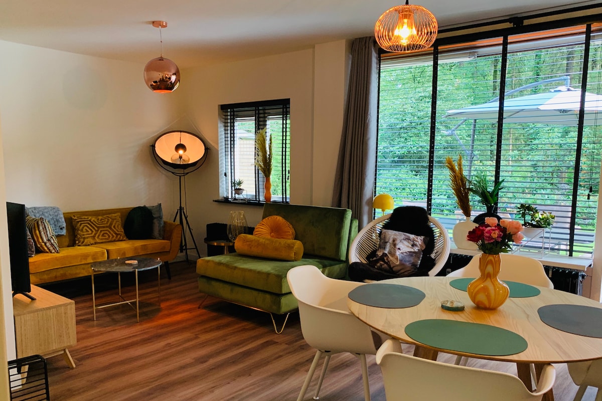(Opremljen dobrim Wi-Fi mrežom i Google Chromecast-om) Na ivici sela Otterlo i na pješačkoj udaljenosti od Nacionalnog parka De Hoge Veluwe (Kröller-Müller), nalazi se moja koliba na flamanskom Gaaiju, koja se nalazi u prelepom Parku prirode Hoefbos. Idealno mesto za opuštanje i uživanje u prirodi. Naša seoska kućica je nedavno renovirana, ima dvije spavaće sobe (1 je povezana sa dnevnom sobom). Lako dostupan javnim prevozom i automobilom, i veoma pogodan za planinare i bicikliste.