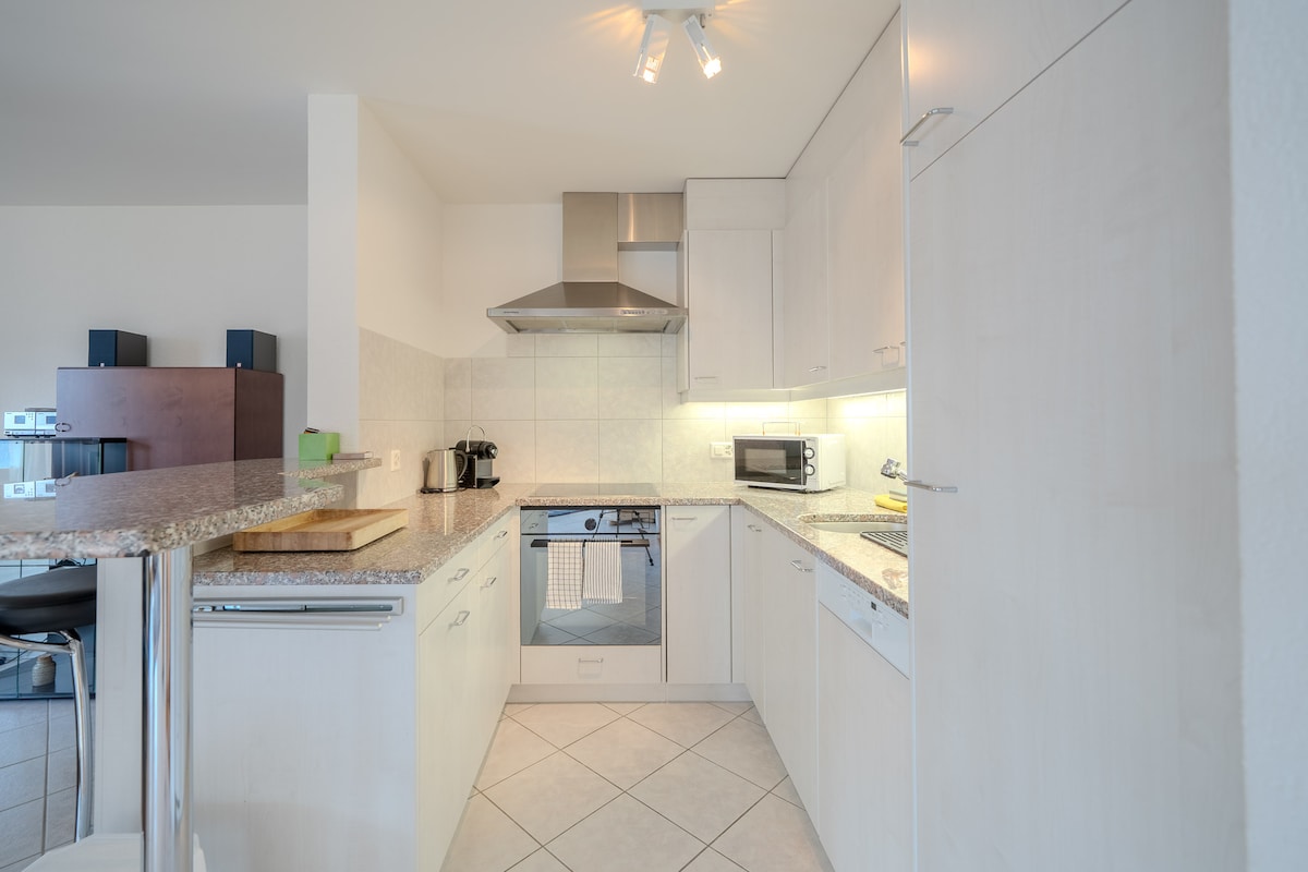 Stan je pogodan za 2 odrasle osobe i 3 dece ili najviše 4 odrasle osobe. Dvosoban stan na 2. spratu je lako dostupan liftom. Dnevna soba i spavaća soba imaju pristup balkonu. Balkon je sunčan, a pogled na fantastičnu planinsku panoramu vas poziva da se zadržite. Udaljen je samo 200 m od kuće do autobuske stanice, a autobus vas udobno vodi do vozova Vajsonhorn i Hornli Ekspres.